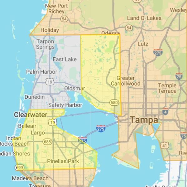 We serve Pinellas, Hilsborough and Pasco Counties.